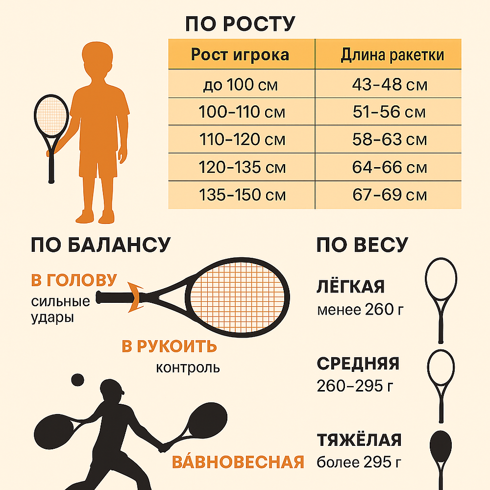 Как выбрать теннисную ракетку по росту, балансу и весу.